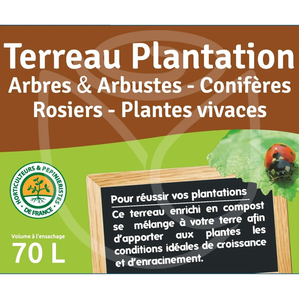 Tout dépend du type de végétaux et de la nature de votre sol. Une terre très lourde, très sableuse ou très caillouteuse demandera plus de terreau qu’une bonne terre franche, qualifiée de fine, riche et souple. En règle générale, nous vous recommandons de procéder à un mélange en volume d'un tiers de terreau de plantation, d’un tiers de terre végétale de votre jardin et d’un tiers d’amendement tel que le Nutriterre.