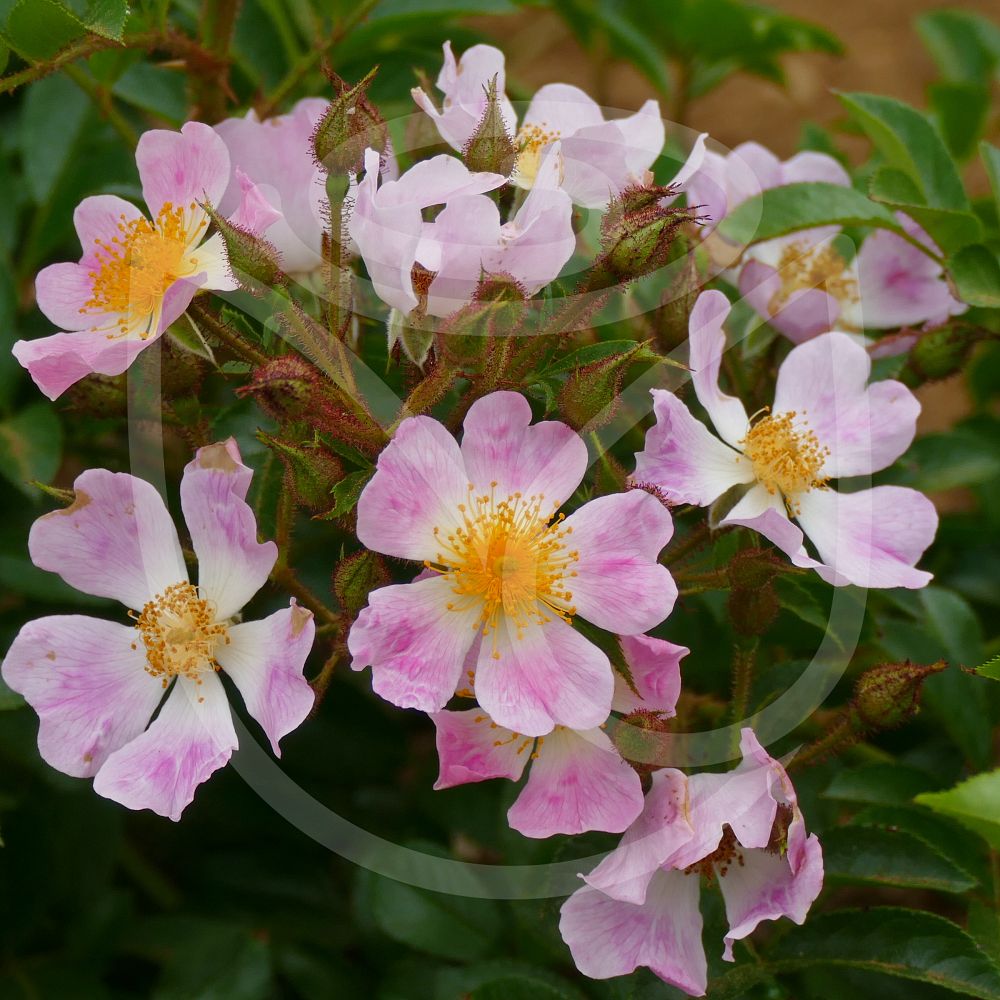 Eglantines rose vif à coeur blanc en quntité importantes, tardives et assez odorantes. Longue durée mais peu remontant.