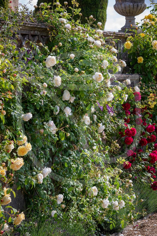 Les rosiers David Austin ont une place indispensable dans ces aménagements, ils peuvent être en arrière-plan pour les plus grands ou en premier plan pour les tailles plus modérées. Et surtout les rosiers à floraison remontante ont la faculté d’offrir plusieurs fois dans la belle saison de magnifiques roses qui rappelons-le sont les reines des fleurs.