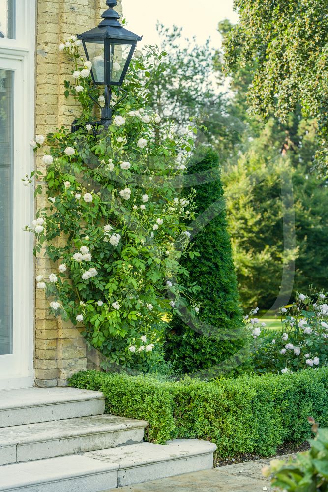 Les rosiers grimpants sont idéaux pour masquer un pilier, un poteau disgracieux ou garnir une petite armature ayant une faible emprise au sol. Ceci permet d’apporter de la végétation, des roses parfumées sur une hauteur avec une faible largeur et d’amener une touche d’originalité. Plantez Claire Austin® au pied du pilier et guider les branches au fur et à mesure de leur allongement autour du pilier de façon à l’enlacer.